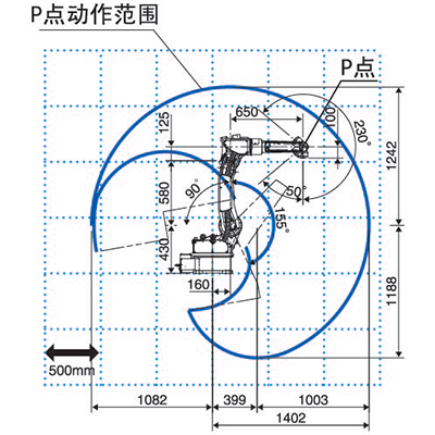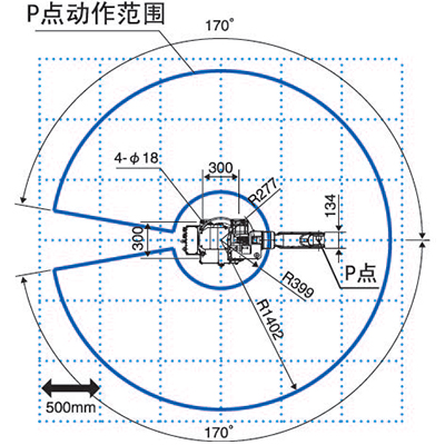 | 動作范圍 | 基本軸J1 | ±170°(±50°) |